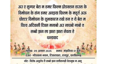 रायपुर. पुरानी बस्ती स्थित अग्रसेन भवन शनिवार को एक खास मौके का गवाह बना। यहां छत्तीसगढ़ी फिल्म ‘मासूम’ का फर्स्ट…